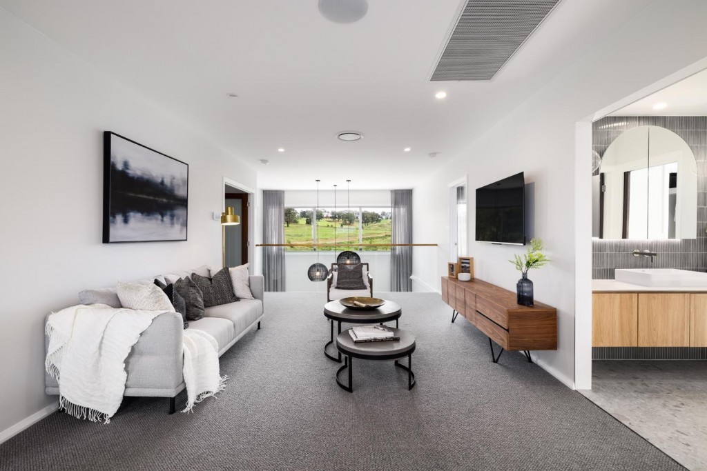 On the upper floor, 4 Bedrooms and 3-way bathroom flow from a central lounge space that floats between 2 sun filled voids overlooking the foyer to the front and dining, alfresco to the rear. An impressive primary bedroom with modern open plan ensuite, walk in robe and private balcony positioned to overlook the outdoor living below. As with any G.J. Gardner Home, we can customize this plan to suit your lifestyle. Contact one of our Design Centers today!