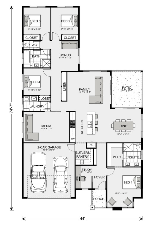Allow yourself to imagine the lifestyle you’ve always wanted, in the home you deserve! The Main living zone is the open plan family and dining area, flowing out to the covered alfresco with a dream entertainers kitchen including butler’s pantry as the central core of the home. The primary suite to the front of the home has you feeling relaxed as you enter and features a walk-in robe and elegant ensuite. A dedicated kids zone to the back comes with additional bedrooms, family friendly bathroom and an activity room that centres the zone. As with any G.J. Gardner Home, we can customize this plan to suit your lifestyle. Contact one of our Design Centers today!